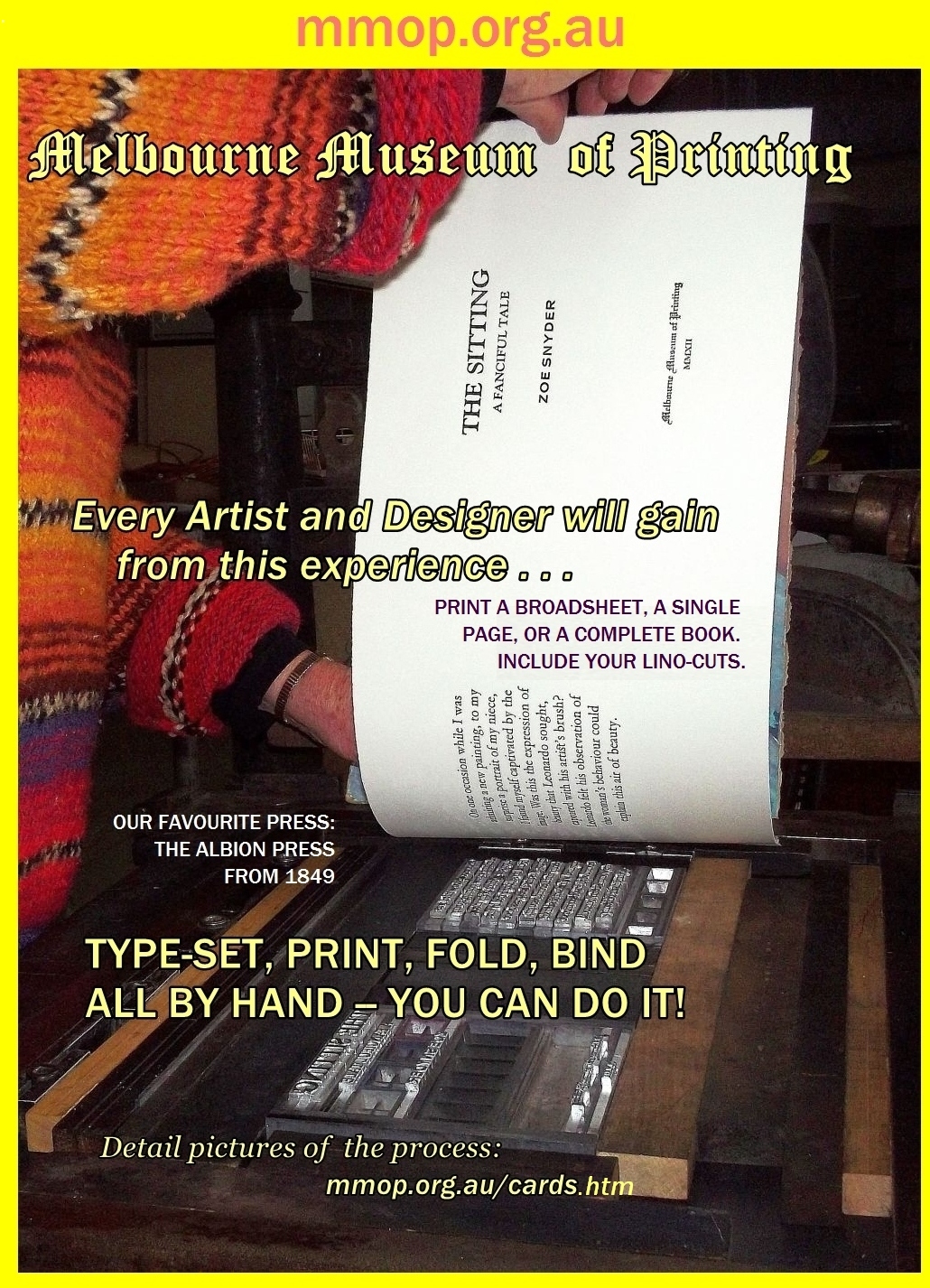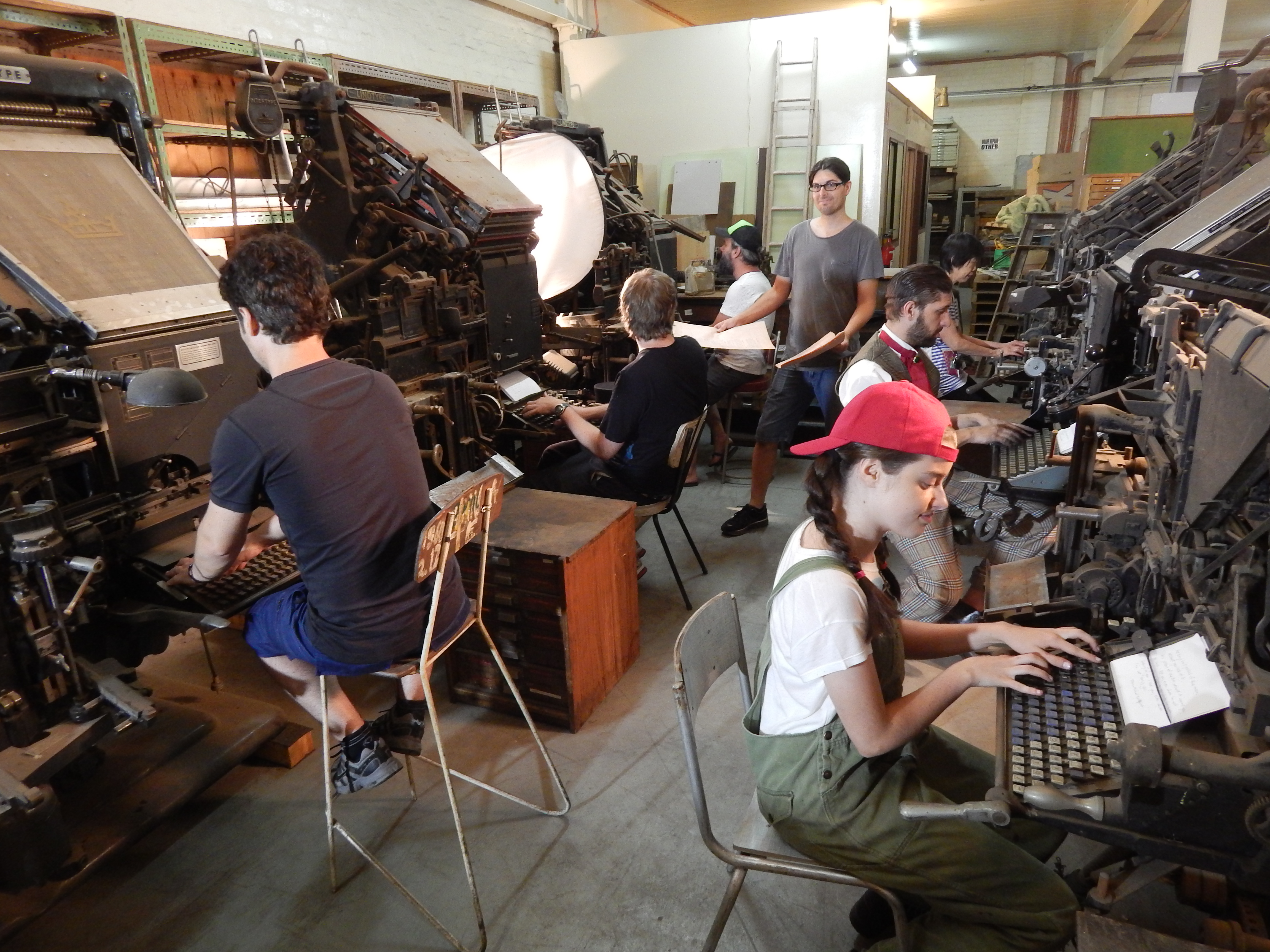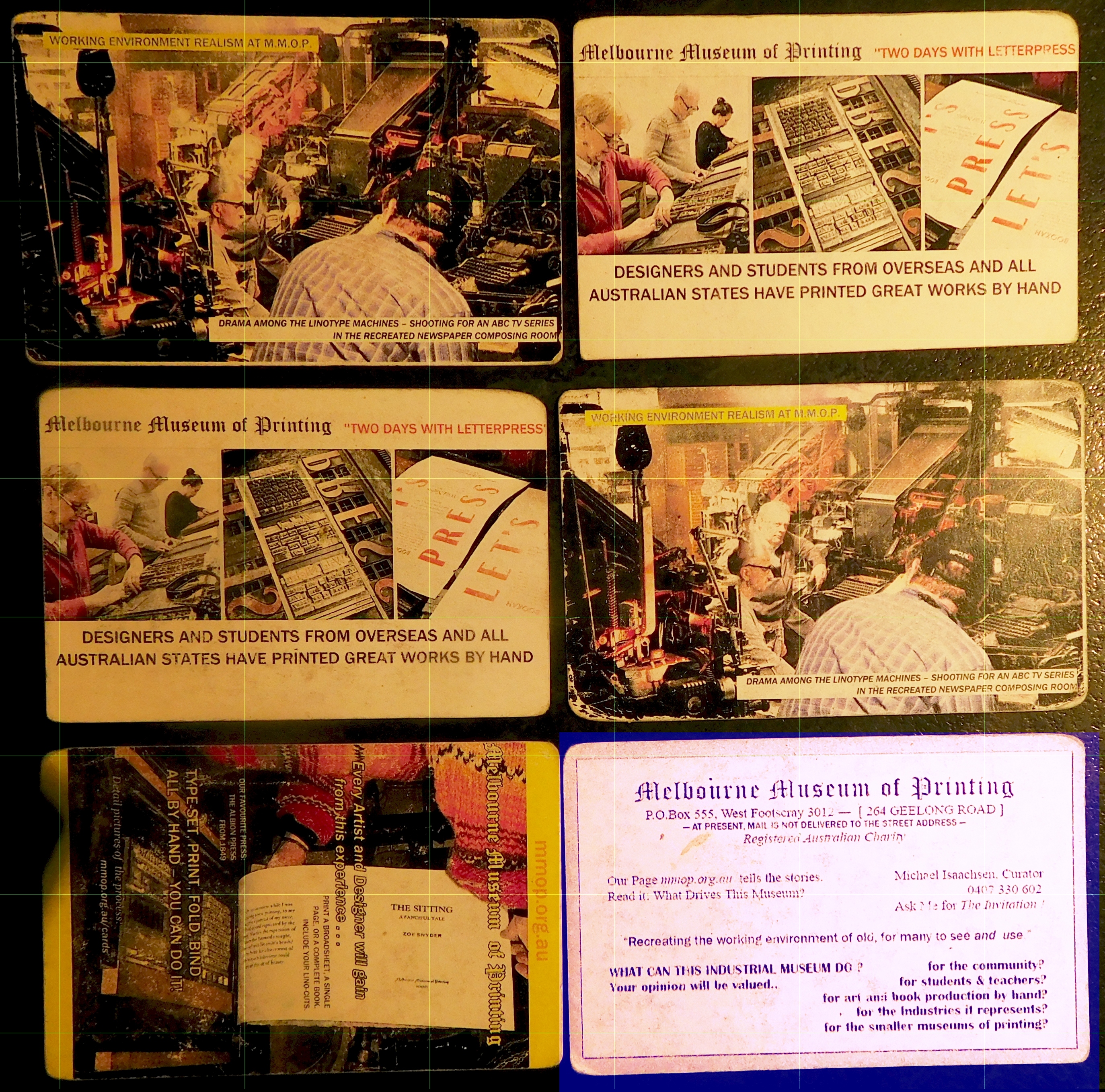 OVER ITS MOST PRODUCTIVE YEARS the Museum attracted and served thousands of secondary and tertiary students (design and book related) with their teachers from many parts of Australia; hundreds of graphic designers wanting unique hands-on understanding, and dozens of productive artists and book printers, several from overseas. MMOP also hosted events for other organisations, offering their clients a unique experience. The realistic environment is probably what attracted at least a dozen film makers to use MMOP as a location (or borrow items for props) for episodes ranging from educational to crime-drama. TIME NOW TO FLESH OUT THE MMOP STORY
