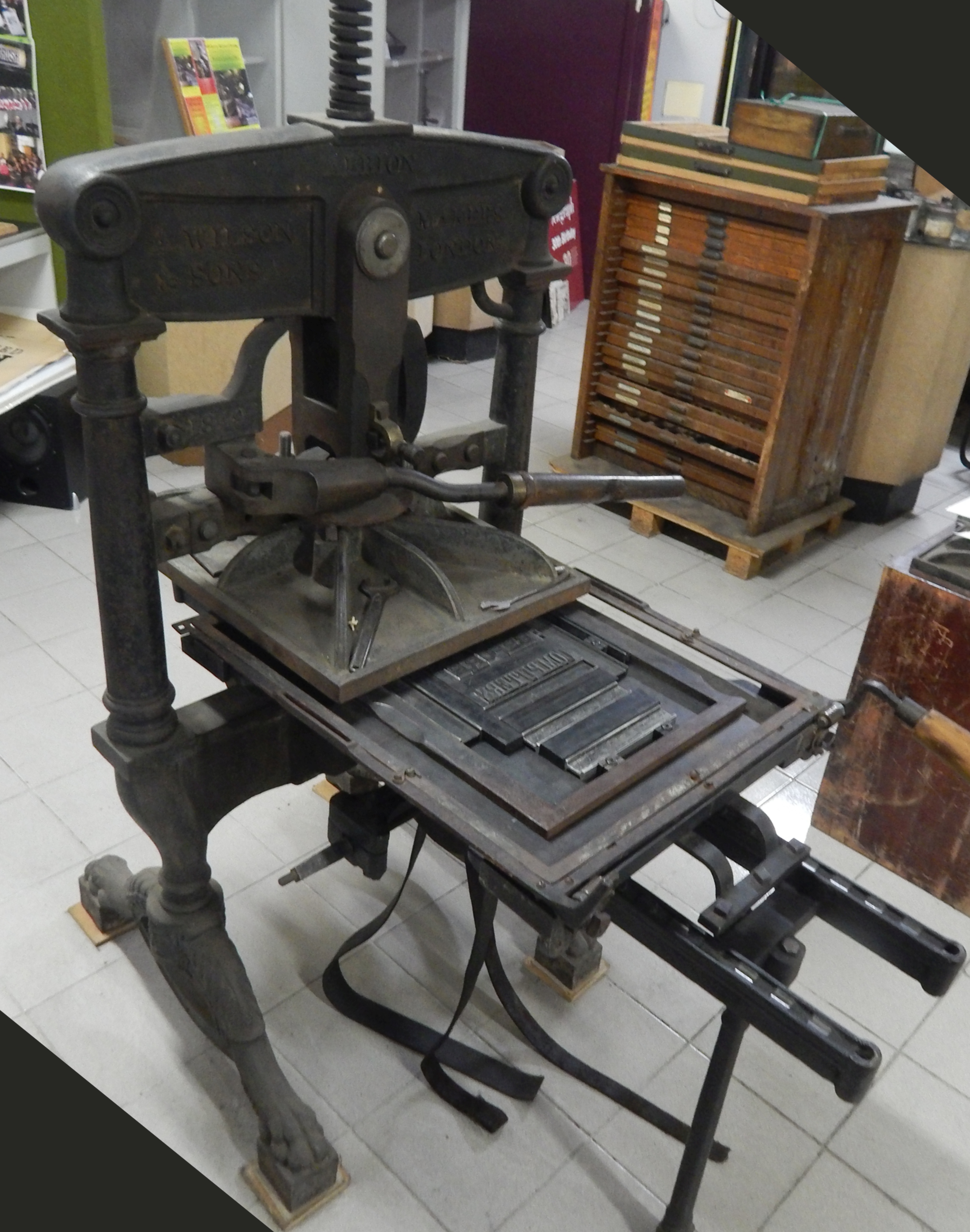 * The Vandercook press, coloured ink on rollers SECONDLY: Just below the MINI-MENU: