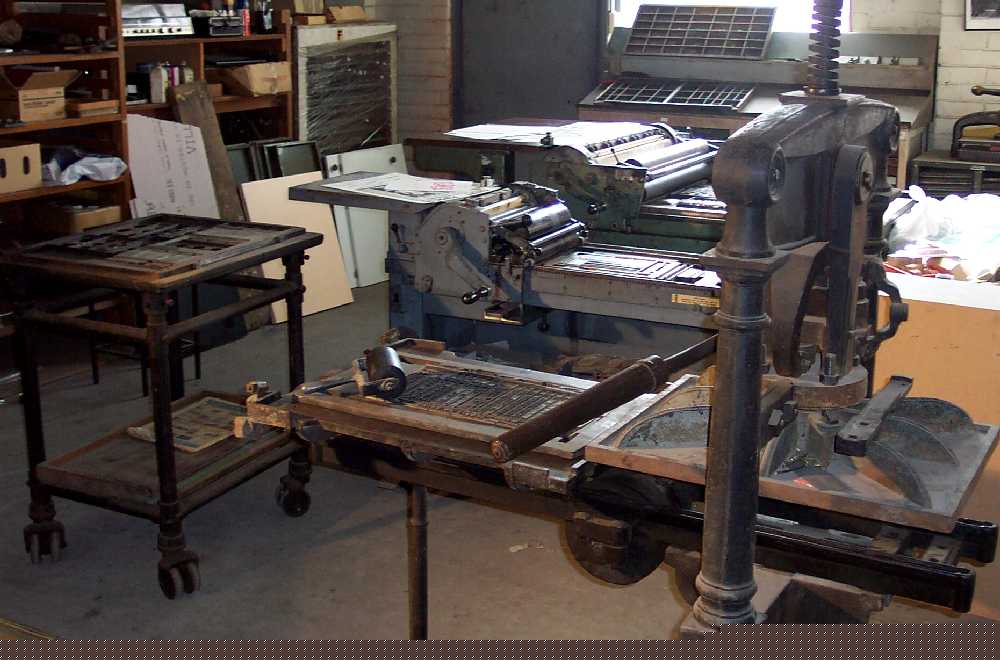 The next is a Vandercook SP15 test press and behind that is a larger test press by Western Machinery of Reading. These have been used by many artists and writers for limited edition books, posters and broadsheets.