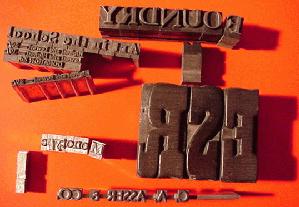 An assortment of types: Linotype slugs, foundry type, Monotype, wooden