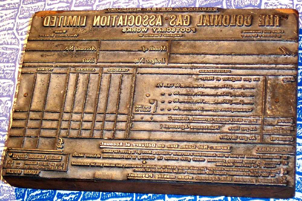 This stereotype of a business form would have been made to permit printing of a greater number of copies than would be possible from the original typesetting. It is also likely that two copies of the form (at least) would be printed on the one page, requiring multiple stereotype plates to be made.