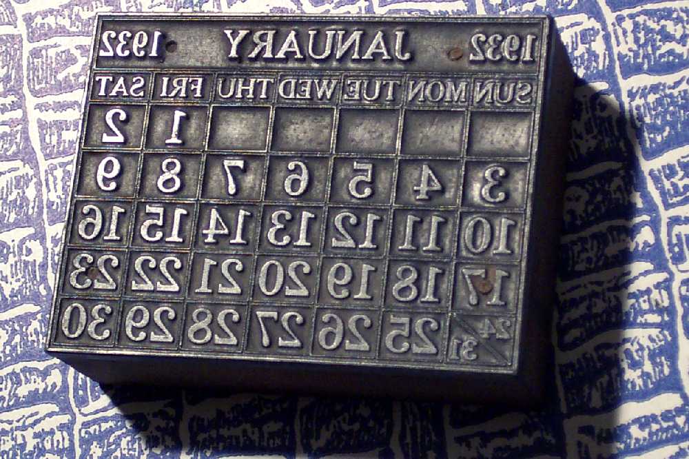 Every year, printers' supply houses would produce sets of stereotyped calendar blocks for the following years' round of calendar and diary printing.